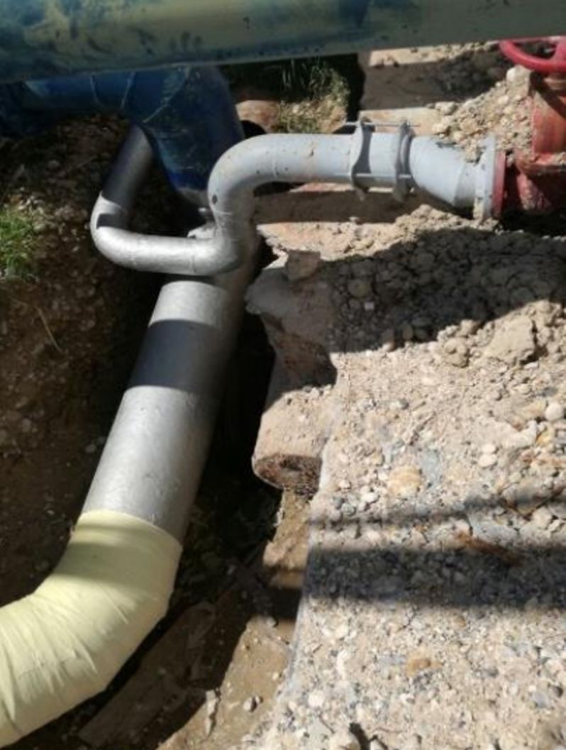 One area of the pipe which could not be isolated was weeping around an elbow. Wrap & Seal Pipe Burst Tape was selected for use on this section because of its live leak repair capabilities.