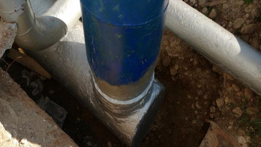 Once all leaks along the pipeline had been attended to, the final stage of Mexico wastewater treatment pipe repair programme involved painting all weakened section with Liquid Metal Epoxy Coating – including the tee-joint sealed with Superfast Aqua PW.